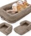 3-in-1 Foldable Human Dog Bed for Adults, Orthopedic Egg Foam Support with Waterproof Liner & Calming Faux Fur, Large Flexible Bean Bed – Taupe
